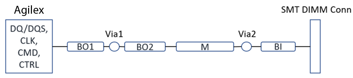 The following figure illustrates the signal connection topology for an SMT type of connector for UDIMM, RDIMM, and SODIMM topologies.