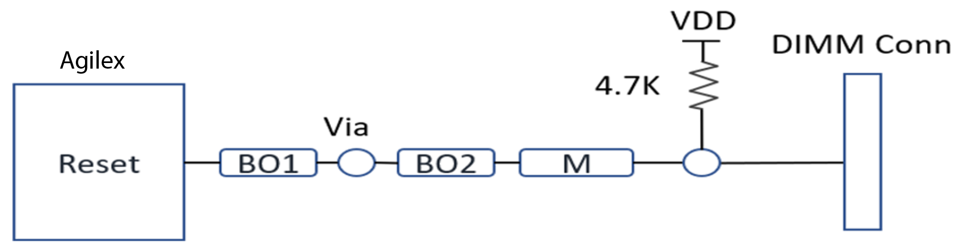 The following figure shows the RESET signal scheme and routing guideline for one DIMM per channel topologies.