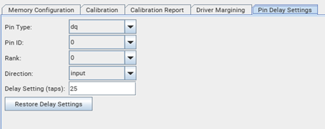 You can select the Pin Type, Pin ID, Rank, and Direction values of any delay that you are interested in, and the toolkit displays the delay value in the Delay Setting (taps) field.