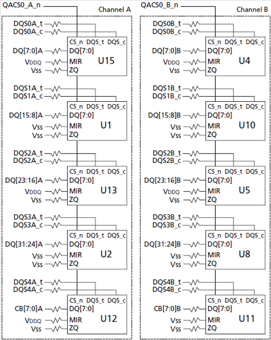 - CS width: 1 (Above topology is single-rank per channel. MT62F512M32D2 supports single-rank per die per channel based on the die organization in memory component datasheet.)