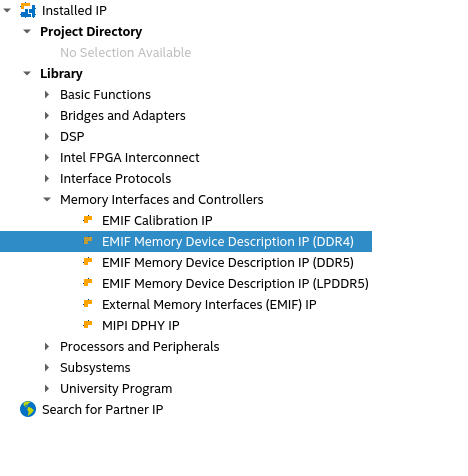 - In the IP Catalog window, select Memory Device Description IP (DDR5). (If the IP Catalog window is not visible, select View > IP Catalog.)