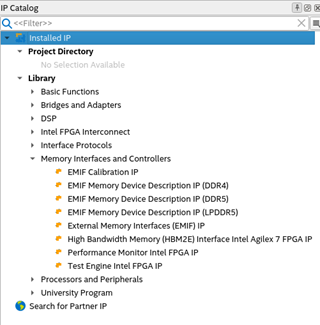 - In the IP Catalog window, select Memory Device Description IP (DDR4).