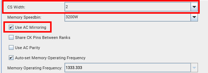 When using DIMMs with dual-die components, ensure that you change the CS Width field to 2 and set the appropriate Command-Address Mirroring value.