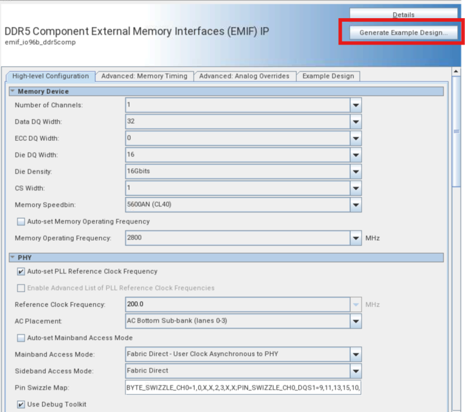 2.11. Generating the EMIF Design Example with the Performance Monitor