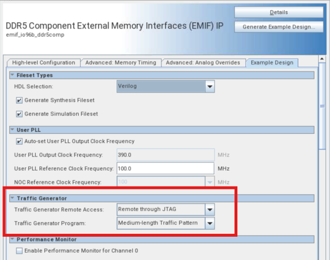 2.11. Generating the EMIF Design Example with the Performance Monitor