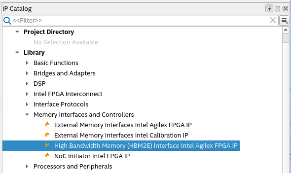 Figure 7. Selecting High Bandwidth Memory (HBM2E) Interface Intel® FPGA IP in the IP Catalog