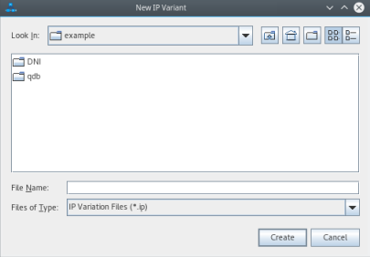 - In the New IP Variant window, type a name (<user instance name>) for your HBM2E IP in the File Name field. Click Create.
