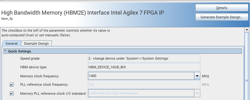 2.2. Configuring the High Bandwidth Memory (HBM2E) Interface FPGA IP