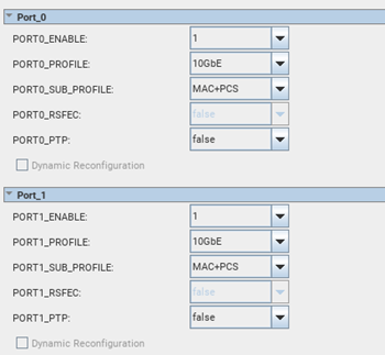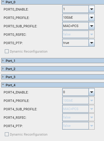 - 100G CAUI-4 is considered as a single port configuration and can only be enabled on port 0/4/8/12. When any of the four ports are configured as 100G CAUI-4 profile, the remaining three ports in the same EHIP Core is hidden in the IP GUI.