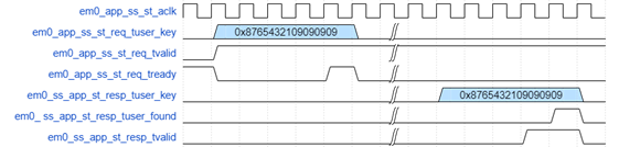 - Send key through app_ss_st_req_tuser_key with app_ss_st_req_tvalid high. The key is accepted when the interface handshaking happens (app_ss_st_req_tvalid and ss_app_req_tready are both high).