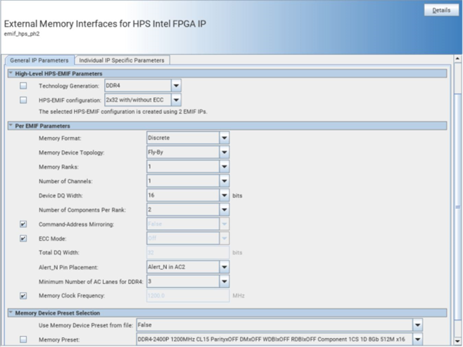 Figure 82. HPS EMIF Parameters DDR4_2x32_ECC_2EMIF