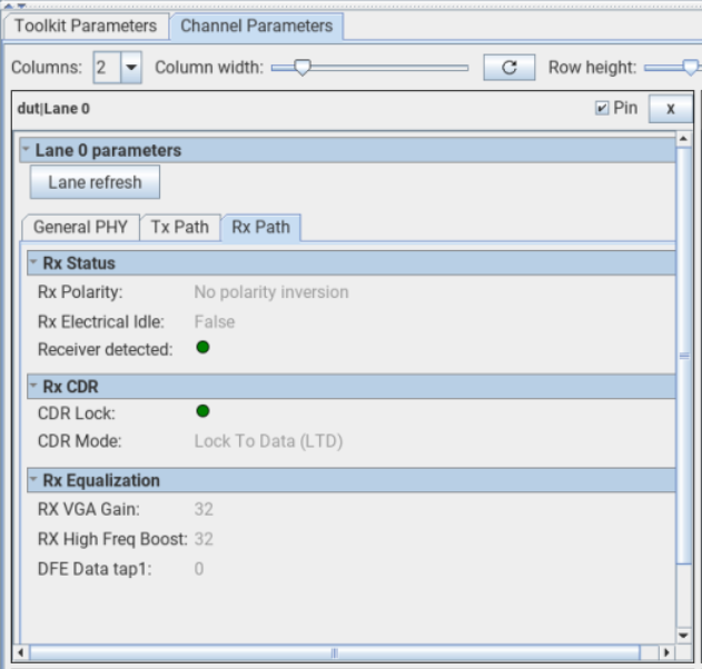 RX Electrical Idle | True, False | Indicates if RX is in electrical idle or not. True: RX is in electrical idle. False: RX is out of electrical idle. |