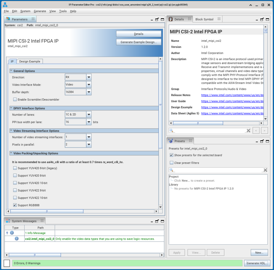 4.1. Generating the MIPI CSI-2 Intel® FPGA IP