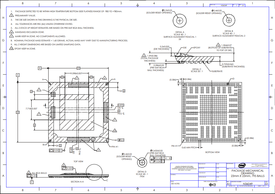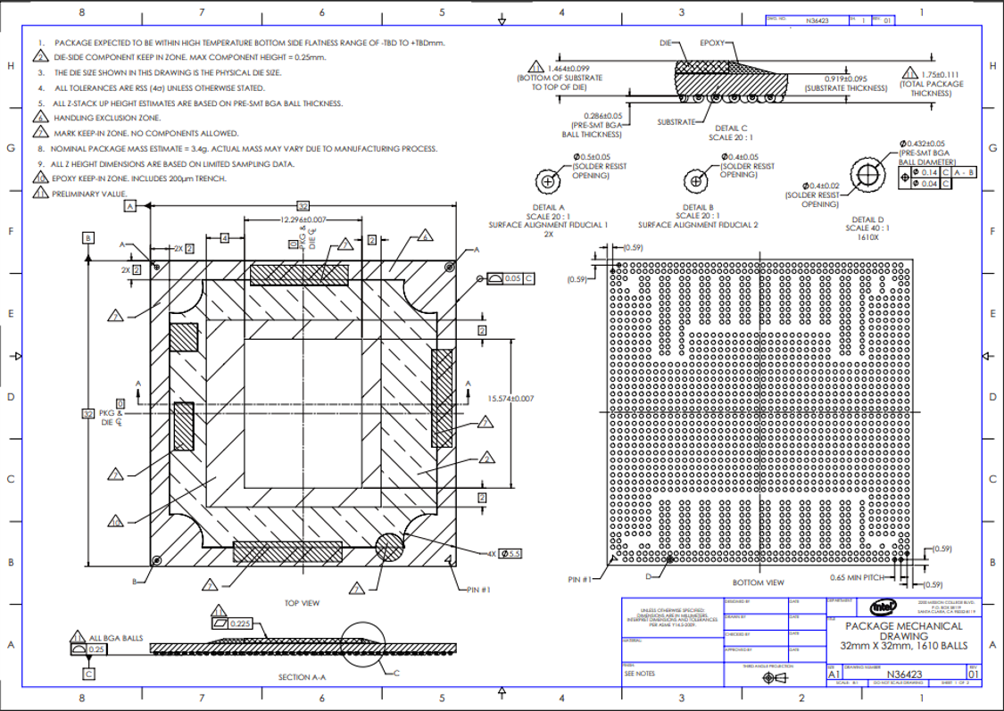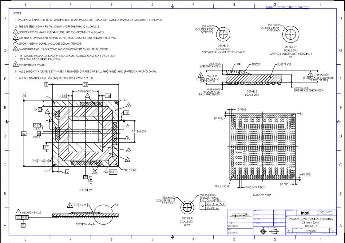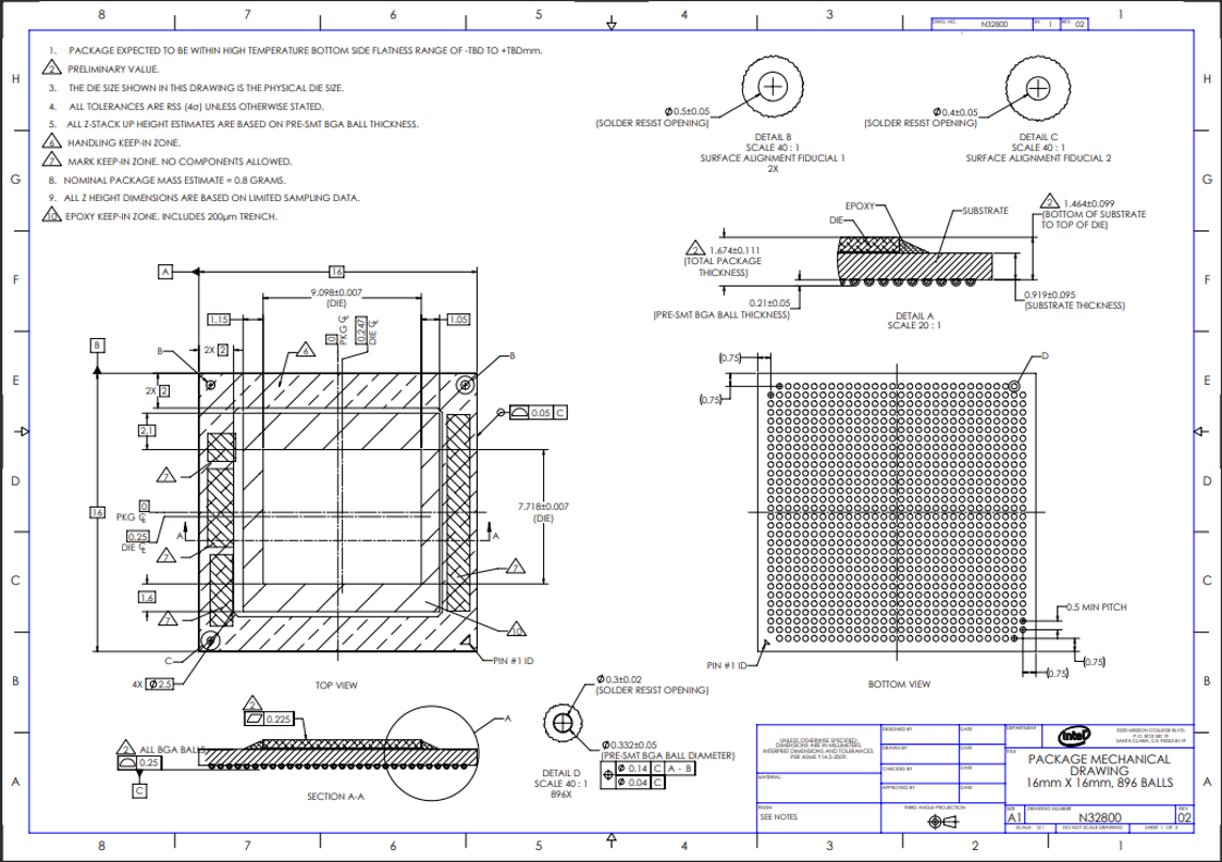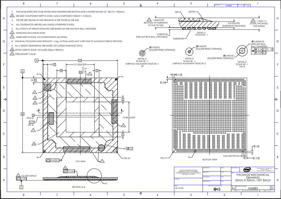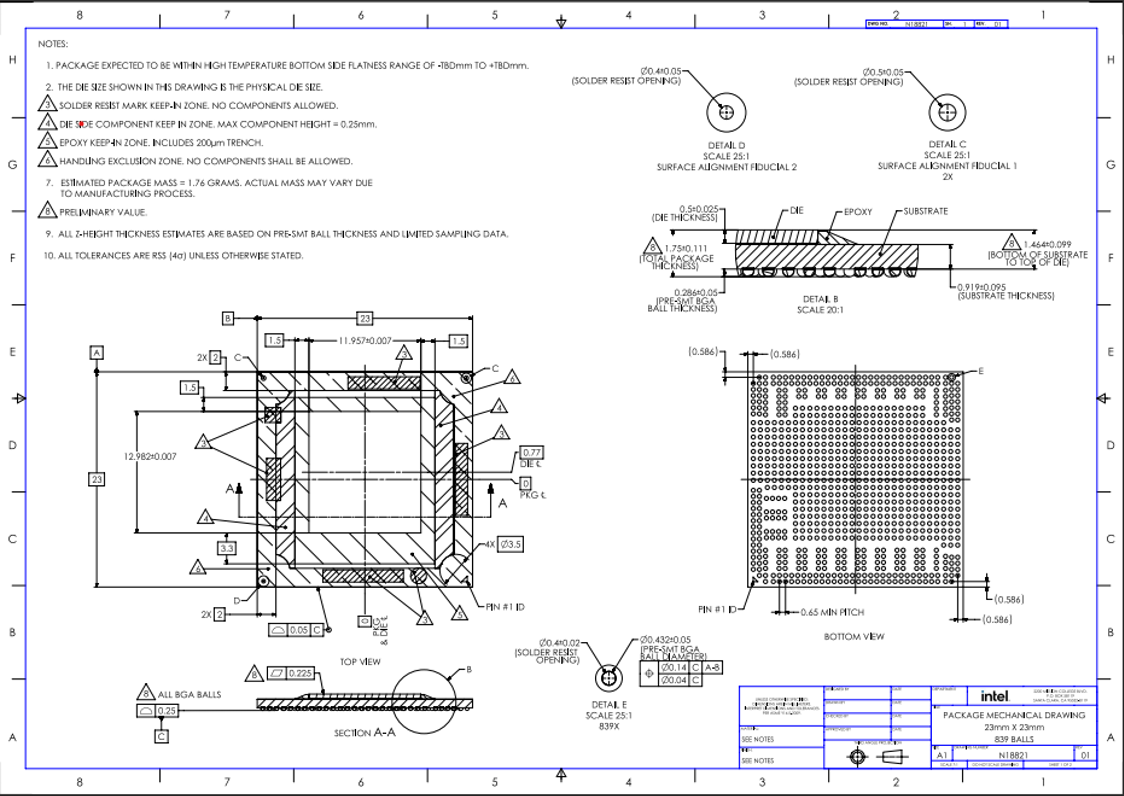 Product | Die Density, KLE | Package Size | Package Code | Drawing Number |