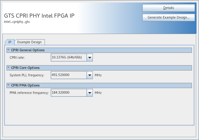 Figure 5. IP Parameter Editor (for 23.4 CPRI PHY Editor)