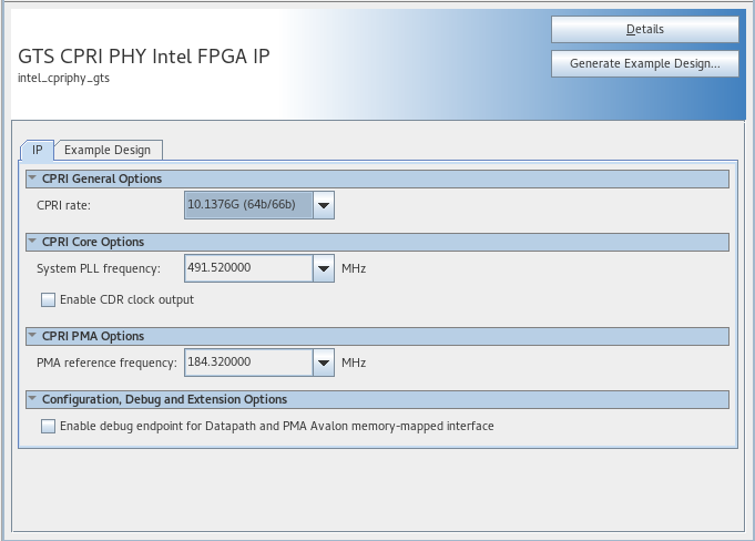 Configuration, Debug, and Extension Option (for CPRI PHY IP 24.1 only) | |||