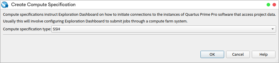 - In the Create Compute Specification dialog box, select SSH for Compute specification type.