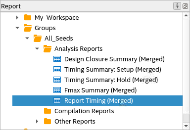 - Click OK. As the compilations proceed, each project's messages indicate the progress. When compilation is complete, the Timing Summaries Report appears in the Reports tab.