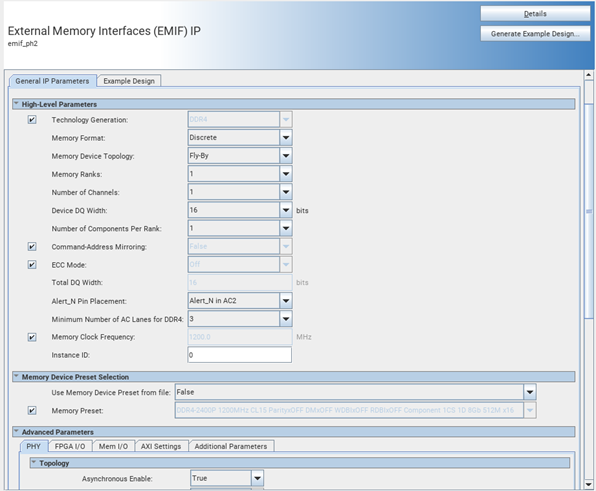| Additional Parameters | Enable you to perform DQ swizzling. Refer to Configuring DQ Pin Swizzling for more information. |