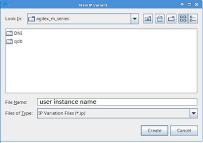 - In the IP Parameter Editor, provide an entity name for the EMIF IP (the name that you provide here becomes the file name for the IP) and specify a directory. Click Create.