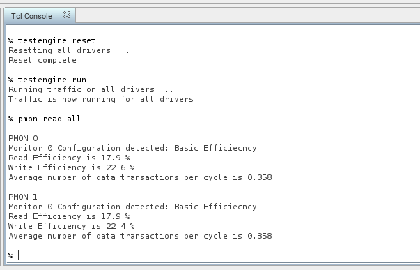 - Read the efficiency metrics on the AXI4 performance monitor by typing: