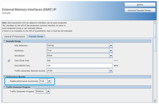 2.9. Generating the EMIF Design Example with the Performance Monitor