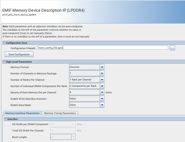 2.1.1.1. Memory Device Description IP Parameter Editor Guidelines