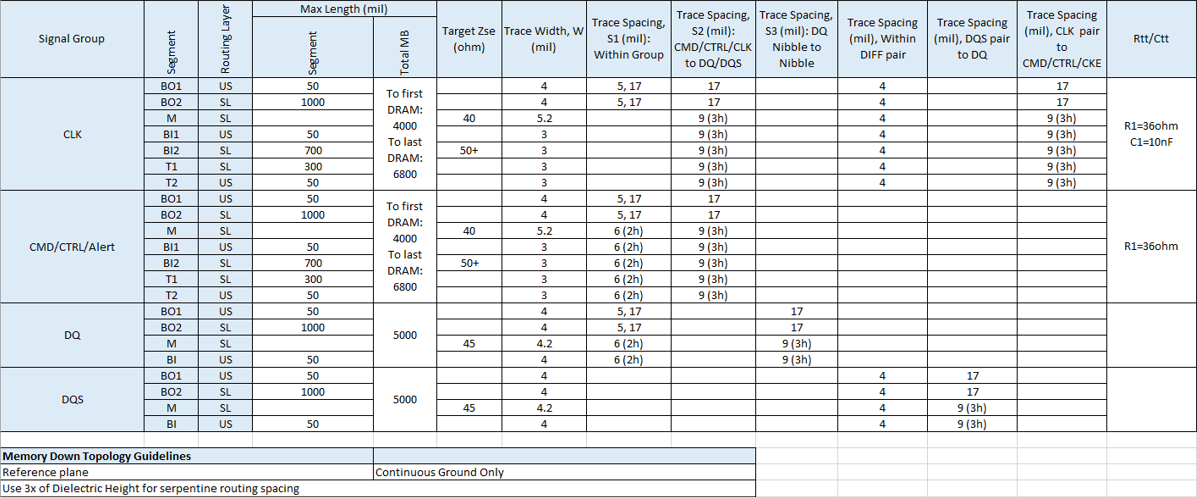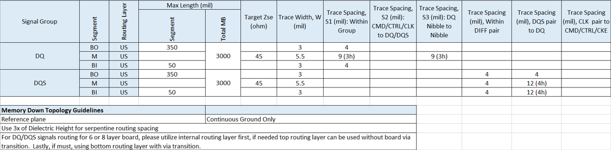 The following table shows the microstrip routing guideline for edge pins,per byte.