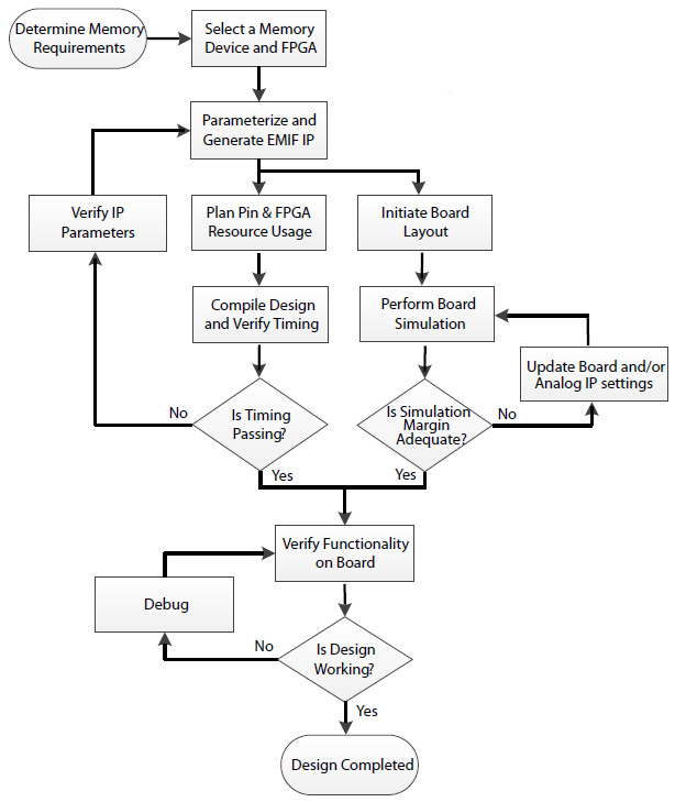 The following figure shows the design flow to provide the fastest out-of-the-box experience with the EMIF IP.