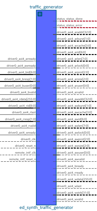 - Compile the design. You can observe the status_status_done and status_status_error signals exported at the top level of the traffic_generator instance.