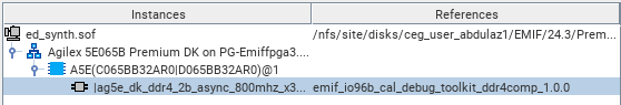 - In the System Console, load the SRAM Object File (.sof) with which you have programmed the board. (Refer to the Prerequisites for Using the EMIF Debug Toolkit topic.)