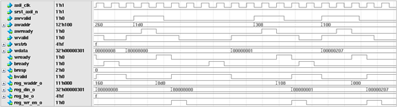 The waveform diagram below shows AXI-Lite write and read to external registers: