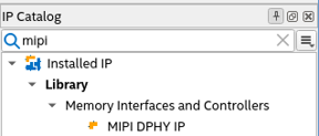 - In the IP Catalog window, select MIPI DPHY IP. (If the IP Catalog window is not visible, select View > Utility Windows > IP Catalog and double-click or click +Add for the IP parameter editor to appear.)