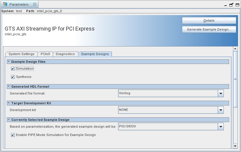 GTS AXI Streaming IP for PCI Express* Design Example User Guide