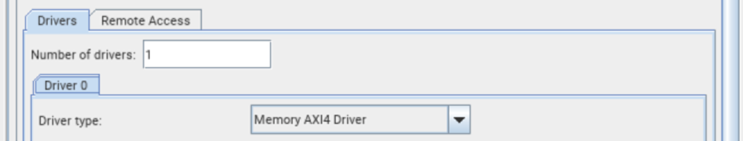 The parameters of the Drivers tab allow you to select the number of drivers that you want to implement, the address and data configurations, and the AXI ports settings.