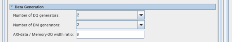 Number of DQ generators | Memory DQ pins can be driven by distinct pattern generators. If there are more DQ pins than generators, the patterns will be replicated. If there are fewer DQ pins than generators, the unused generators are discarded. The supported values for this parameter are: 1, 2, 4, 8, 16. Default value is 2. |