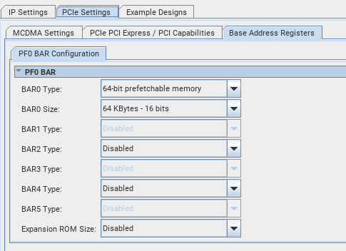 If you select a 64-bit type for BAR 0/2/4, then the adjacent BAR 1/3/5 is disabled.