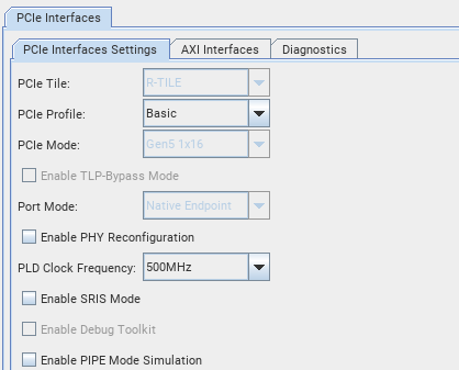 PCIe Tile | R-Tile | R-Tile | Selects the supported Tile of the PCIe Interface.