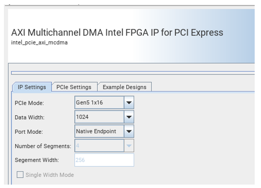 Using Quartus® Prime, you can generate a design example for the AXI Multichannel DMA IP.