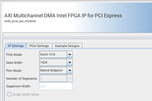 Number of segments in data interface. IP Parameter Editor automatically selects a value per the Data Width: