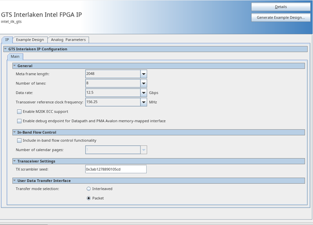 2.3. Specifying the GTS Interlaken IP Parameters and Options