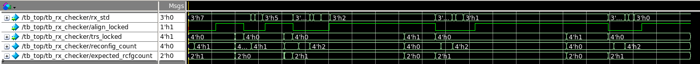 | /tb_top/tb_rx_checker/reconfig_count | Actual number of transceiver reconfiguration triggered after every video standard switching versus the expected number of configurations. |