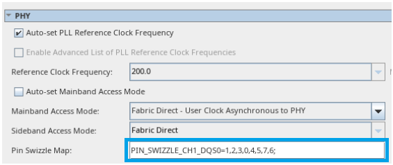 | Pin Swizzle | PIN_SWIZZLE_CH0_DQS0 PIN_SWIZZLE_CH0_DQS1 | PIN_SWIZZLE_CH1_DQS0 PIN_SWIZZLE_CH1_DQS1 |