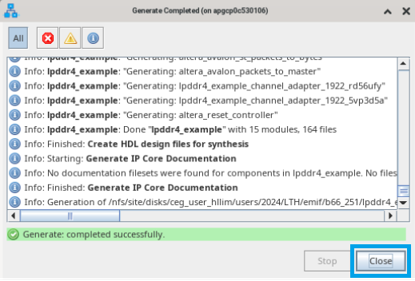 - After the HDL has been successfully generated, click Close at the bottom-right of the dialog box.