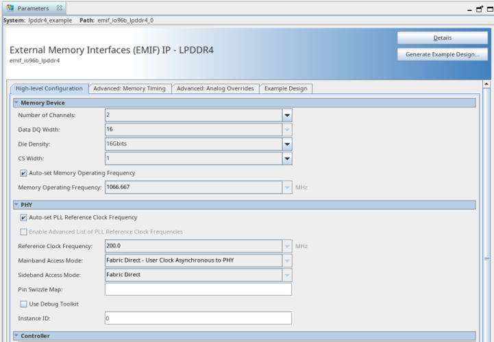 | Auto-set Memory Operating Frequency | if true, let IP select max frequency that this configuration can support for the current device speedgrade. If false, user can set custom value for operating frequency. Default value is true (Identifier: MEM_OPERATING_FREQ_MHZ_AUTOSET_EN) |
