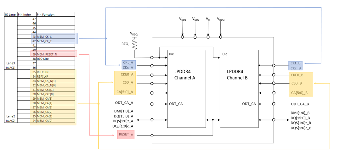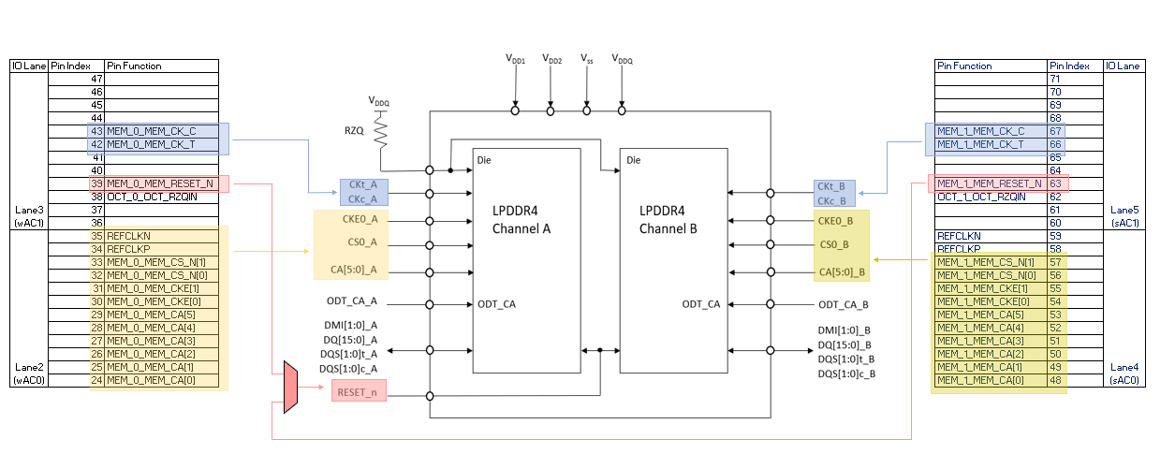 | Data strobe | DQS[1:0]_t_A DQS[1:0]_c_A DQS[1:0]_t_B DQS[1:0]_t_B |