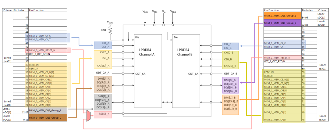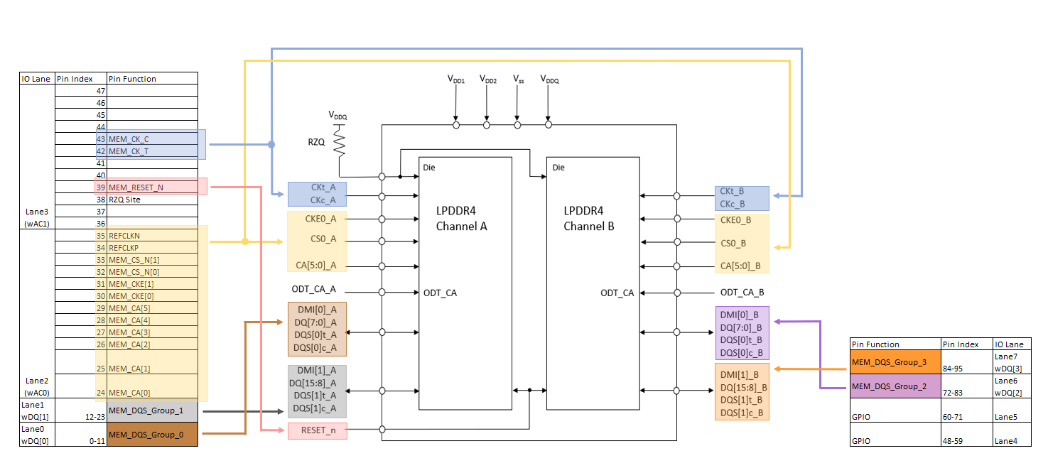 | Primary | LPDDR4 x32 | DQ[3] P | DQ[2] P | GPIO | GPIO | AC1 P | AC0 P | DQ[1] P | DQ[0] P |