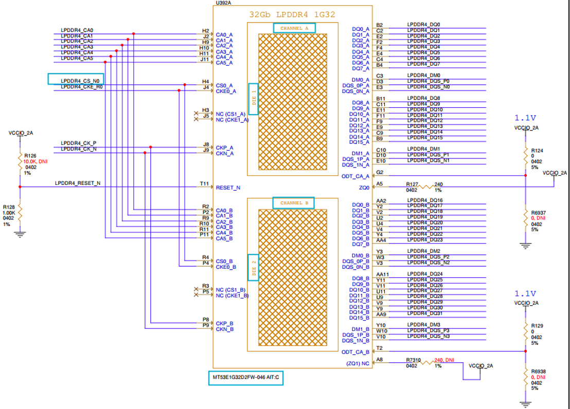 - Data DQ Width: 32. (DQ pins per memory channel. Die 1 and Die 2 implemented as single x32 interface.)