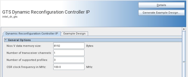 Figure 4. GTS Dynamic Reconfiguration Controller IP Tab