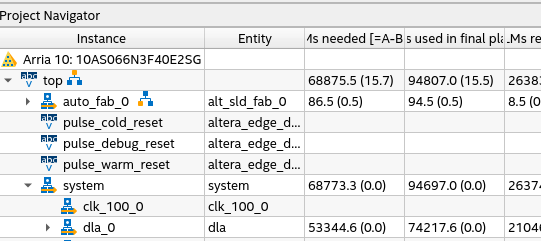 The main FPGA AI Suite SoC design example is contained within a single Platform Designer system, called system. Double-click this node in the Quartus® Prime Project Navigator to launch Platform Designer.